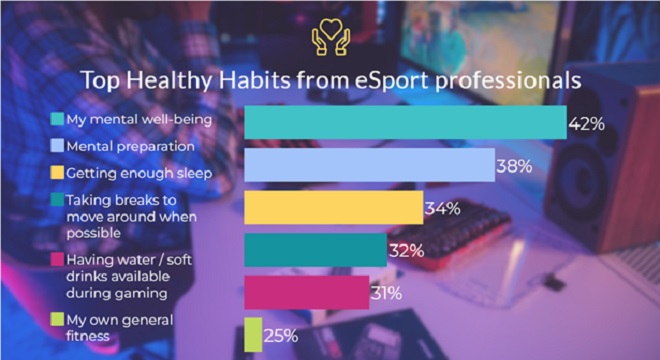 De plus, 40% (37% en Europe) des pros de l’e-Sport disent favoriser les pauses pour dormir et manger plus sainement pour améliorer leurs performances, plutôt que de jouer de manière discontinue. A titre de comparaison, 59% (53% en Europe) des Top influenceurs ont répondu qu’ils préféraient continuer de jouer plutôt que de s’accorder des breaks.