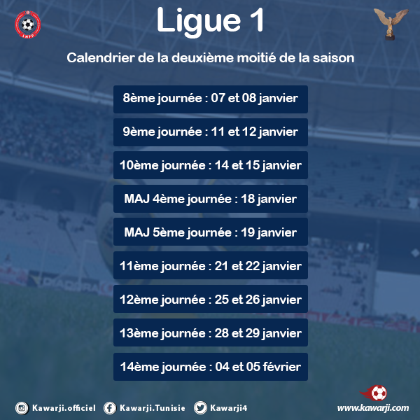 Tunisie Tribune (Ligue 1) – Voici le calendrier des matches de la deuxième moitié de la saison en Ligue 1 :