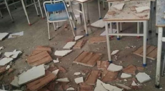 L’incident a eu lieu lorsqu’une partie du plafond d’une superficie de 2m2 s’est effondrée dans la salle de classe lors d’une séance de cours aux élèves de la cinquième année primaire, générant un état de panique générale au sein de l’école.