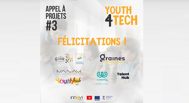 Tunisie Tribune (Innov’i) – Dans le cadre de son troisième appel à projets « Youth4Tech », Expertise France au travers du projet Innov’i – EU4Innovation, d’appui à l’écosystème de l’entrepreneuriat et de l’innovation, financé par l’Union européenne, a sélectionné quatre nouveaux projets d’appui de l’écosystème de l’entrepreneuriat et de l’innovation en Tunisie, avec une enveloppe totale de 265 000 EUR (soit plus de 870 000 dinars tunisiens). Lancé en juin 2022, ce fonds a pour objectif de mettre plus spécifiquement l’accent sur la sensibilisation et le renforcement de la culture entrepreneuriale pour les 8-24 ans.