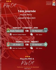 Tunisie Tribune (Basket SG/SF)- Ci-après le programme complet des matches comptant pour la 1ère journée play-out de la Nationale A :