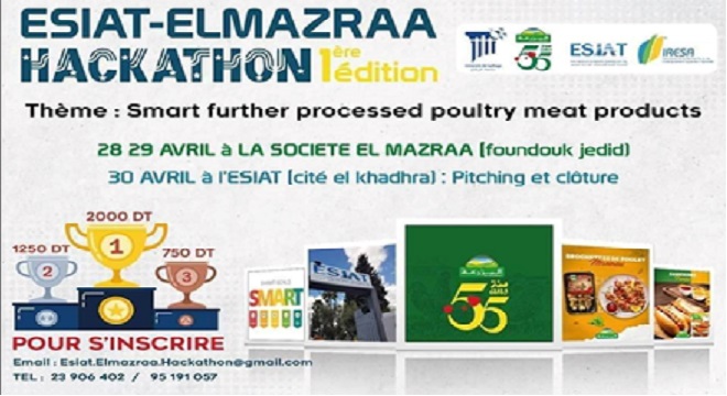 Tunisie Tribune (EL MAZRAA et l’ESIAT) – La Société El Mazraa et l’École Supérieure des Industries Alimentaires de Tunis (ESIAT) organisent du 28 ou 30 avril 2023, un Hackathon avicole sous le thème : « Smart further-processed poultry meat products », pour donner une belle opportunité aux étudiants, et aux jeunes diplômés de différentes institutions et disciplines, d’exercer leurs talents et donner liberté à leurs esprits créatifs. Les travaux seront axés sur le domaine avicole et basés sur la technologie alimentaire et le génie des procédés alimentaires, en synergie avec les aspects : numérique, artistique et marketing. Dans un cadre compétitif, offrant de nouveaux challenges et responsabilités, des groupes de travail seront formés pour tester des idées et/ou répondre à des problématiques en rapport avec le thème principal de ce Hackathon.