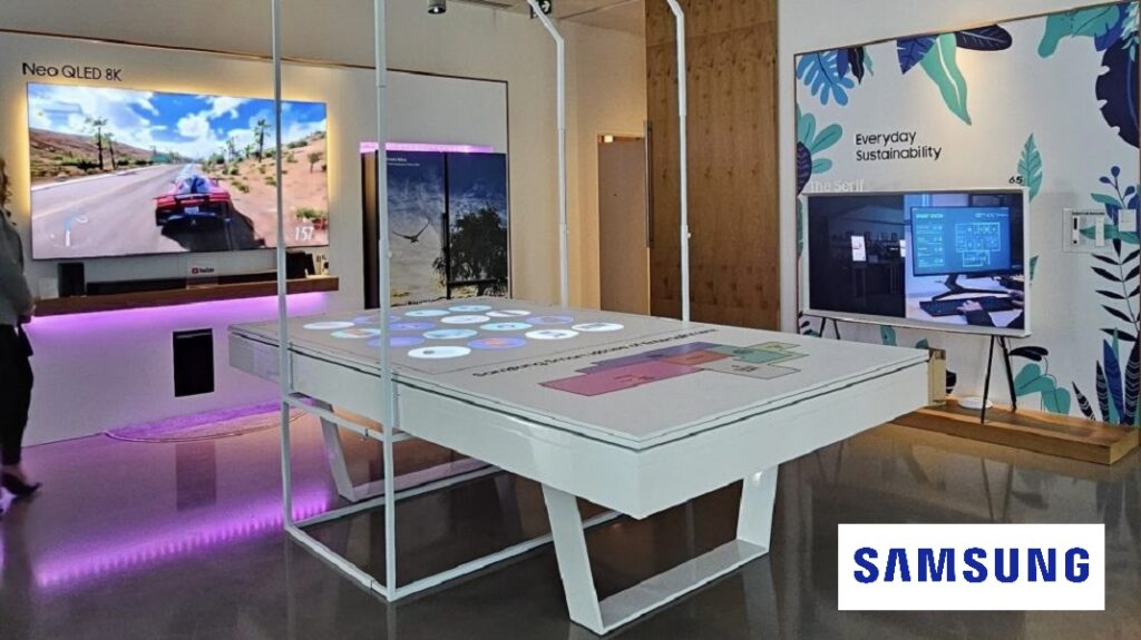Dans une luxueuse villa du complexe Nikki Beach à Dubaï, Samsung a collaboré avec plusieurs partenaires pour concevoir une maison connectée sécurisée, personnalisée et durable. Ils ont démontré comment la caméra Amazon Ring, les lumières intelligentes Phillips Hue et le système Microsoft Xbox X se connectent en toute transparence à l’application Samsung SmartThings pour améliorer les modes de vie des utilisateurs. L’ensemble du système était géré via une interface simplifiée sur les téléviseurs intelligents Samsung, qui représentent le nouveau pivot de la maison intelligente. En tant que centre d’expérience intelligent, la télévision intelligente devient un nouvel élément de communication domestique, s’intégrant aux smartphones utilisés par la plupart des utilisateurs aujourd’hui.