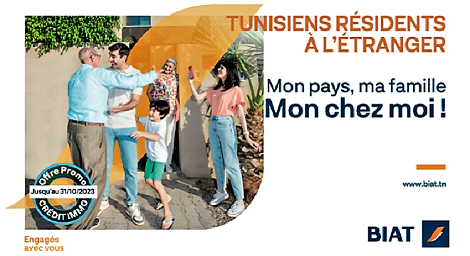 Pour rendre concret aux Tunisiens Résidant à l’Etranger le rêve de devenir propriétaire en Tunisie, la BIAT offre des conditions préférentielles pour toute demande de crédit immobilier effectuée durant cette période. Cette offre promotionnelle met à la disposition des TRE des taux d’intérêts avantageux et des commissions réduites, en plus d’avantages en matière d’assurances vie et logement liées au crédit, en partenariat avec Assurances BIAT.