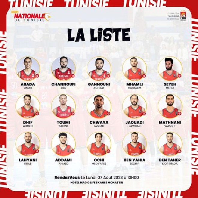 Tunisie-Tribune (Basket) – Après un stage de 3 jours à Monastir, le sélectionneur de basketball a dévoilé la liste des 15 joueurs qui joueront le tournoi qualificatif aux JO Paris 2024, qui se tiendra à Lagos, au Nigéria du 12 au 20 août.