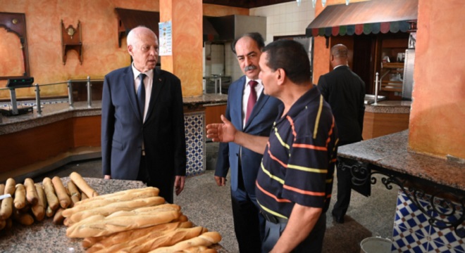 Accompagné du ministre de l’Intérieur, Kaïs Saïed a,également, visité certaines boulangeries dans la capitale afin de vérifier la disponibilité du pain.