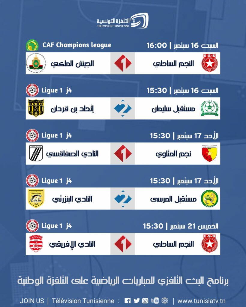 Ligue 1 : Quatre matches de la 4ème journée seront retransmis sur la TV tunisienne (Détails)