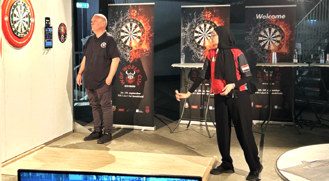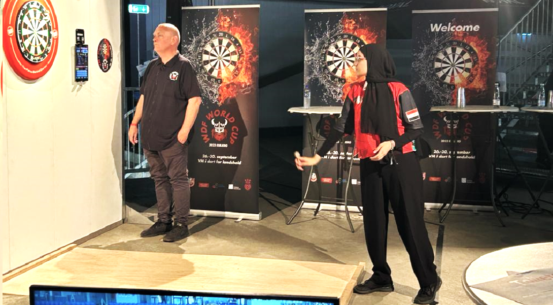 Tunisie-Tribune (Coupe du monde de fléchettes – Darts) – Maryem Hamdi, la championne égyptienne de l’équipe de Darts (fléchettes), a remporté la médaille de bronze à la Coupe du monde de Darts (2023 World Cup of Darts) qui se tient dans la ville d’Esbjerg au Danmark, du 22 septembre au 1er octobre 2023, avec la participation de 54 pays.