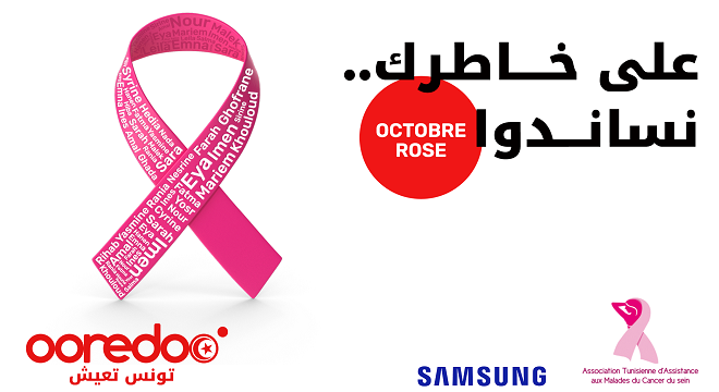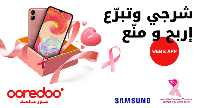 Ooredoo, et à travers son programme de responsabilité sociétale « Tounes T3ich », organise une campagne d’envergure avec son partenaire stratégique SAMSUNG dans le but de récolter le maximum de fonds au profit de l’Association tunisienne d’assistance aux malades du cancer du sein (ATAMCS).