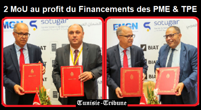 Tunisie-Tribune (Financements des PME et TPE) – La Société Tunisienne de Garantie, SOTUGAR, gestionnaire de régimes de garantie pour faciliter l’accès aux financements des PME et TPE, vient de signer deux mémorandums (MoU), d’une part avec l’ANME (Agence nationale de maîtrise de l’énergie) et, d’autre part, avec le FTI (Fonds tunisien d’investissement).