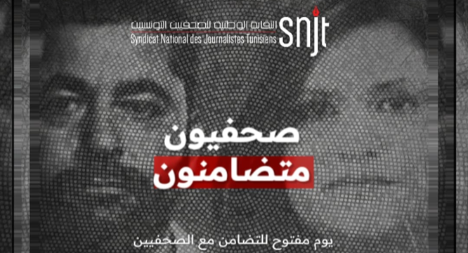 Dans une déclaration médiatique, Aïda Hechri, vice-présidente du SNJT, a rappelé la situation préoccupante de deux journalistes tunisiens, Khalifa Kassami et Chahda Haj Mabrouk, toujours détenus.