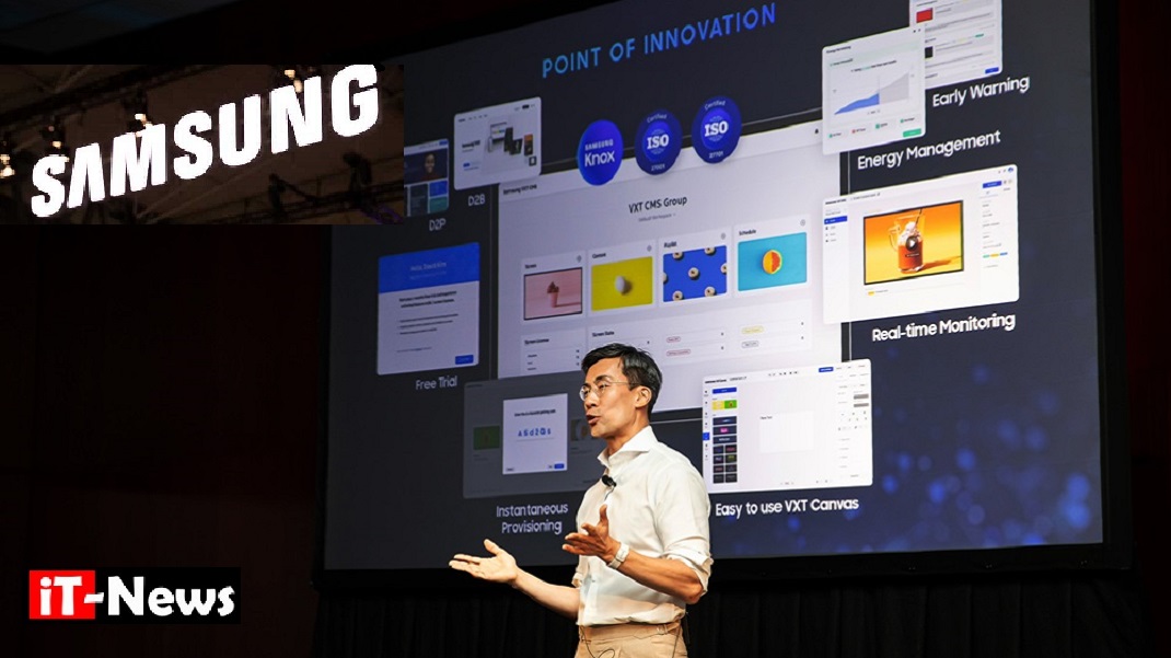 - Samsung VXT :un CMS cloud natif combinant la gestion de contenu et d’affichage à distance sur une seule plateforme sécurisée. Conçue dans un souci de facilité d’utilisation, la solution tout-en-un permet aux entreprises de créer et de gérer facilement leurs écrans numériques. Il rationalise les opérations avec configuration et récupération rapides, tout en offrant un déploiement facile, des économies de coûts et un temps d’arrêt minimal en cas de panne. Sa fonctionnalité VXT Canvas simplifie la création de contenu, la rendant plus intuitive et conviviale.