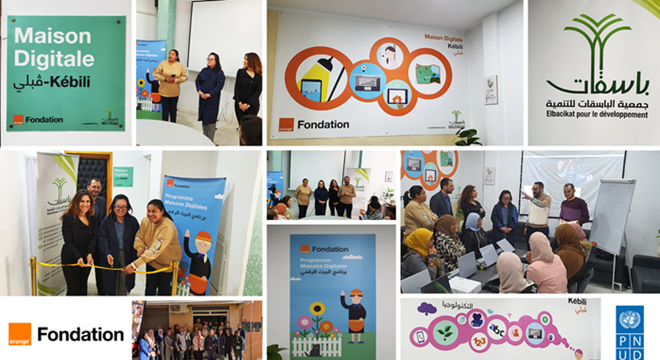 A l’occasion de la Journée internationale des femmes du 8 mars, sur le thème cette année de l’investissement en faveur des femmes, le PNUD et la Fondation Orange Tunisie ont inauguré une nouvelle Maison Digitale à Kébili, qui sera gérée par l’association Elbacikat pour le développement pour former plus de cent femmes entrepreneures, et ce dans le secteur de l’économie verte, d’ici fin 2024. Cette maison s’ajoute à un réseau de 26 structures, présentes sur tout le territoire, portées par la Fondation Orange Tunisie et ses partenaires. Cette initiative sera suivie par d’autres actions, telles que la formation de jeunes filles, diplômées ou non, aux métiers de la technologie au sein du réseau Orange Digital Center Clubs des régions ciblées. Dans ce cadre, il sera aussi possible d’expérimenter des solutions innovantes au sein des FabLabs Solidaires afin d’accélérer la réalisation des Objectifs de Développement Durable (ODD) et de soutenir et de renforcer la résilience des écosystèmes locaux, en particulier face aux changements climatiques.