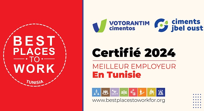 Tunisie-Tribune (Votorantim Cimentos) –  Ciments Jbel Oust, usine de fabrication de matériaux de construction et faisant partie du groupe Votorantim Cimentos, a été récemment désigné comme meilleur employeur en Tunisie pour l’année 2024. Cette reconnaissance souligne l’engagement de l’entreprise envers le bien-être, le développement professionnel et la satisfaction de ses collaborateurs.