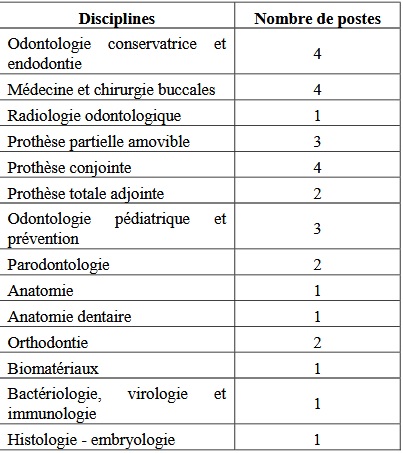 Le concours est ouvert au profit du ministère de la santé, dans 14 disciplines et pour le nombre de postes indiqués dans le tableau ci-après.