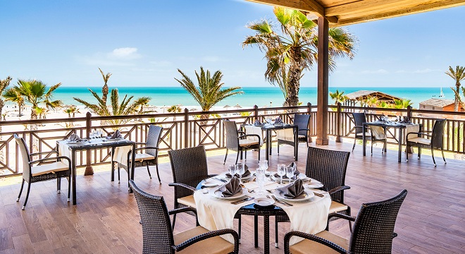 L’hôtel propose une offre tout compris avec 7 restaurants et bars. Les clients pourront savourer des produits naturels, frais et faits maison. Il y a tout d’abord le restaurant Buffet : Entièrement rénové, avec une grande terrasse offrant un espace de restauration, il sert le petit-déjeuner, le déjeuner et le dîner. L’hôtel propose également un restaurant thématique méditerranéen à l’heure du dîner avec une vue panoramique sur la mer, proposant trois thèmes : fruits de mer, italien et tunisien.