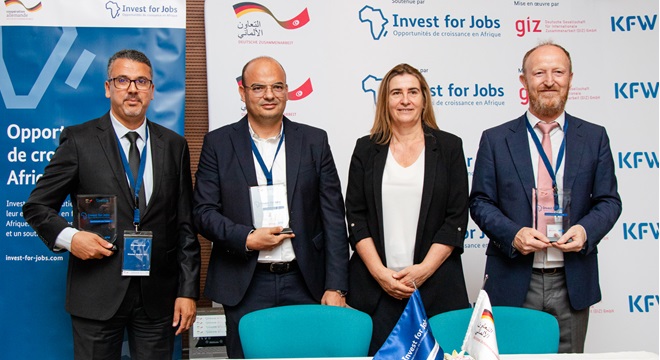 Le 11 juillet 2024, la Facilité Investissement pour l’emploi, représentée par sa Directrice générale Mme Anke Afflerbach d’une part, et les représentants des 3 projets ont signé une convention de subvention pour la mise en œuvre de leur projet d’investissement en Tunisie.