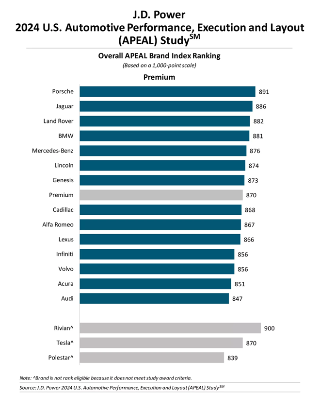 Le cabinet J.D. Power a publié la dernière édition de son étude intitulée « Automotive Performance, Execution and Layout ». Les auteurs de ce rapport cherchent à analyser la satisfaction des automobilistes à l’égard de leur véhicule. Premier constat : le contentement des Américains progresse. Le taux moyen est de 847, soit 2 points de plus qu’il y a un an. Il est intéressant de noter que le score des électriques (hors Tesla) atteint même un niveau record de 877.