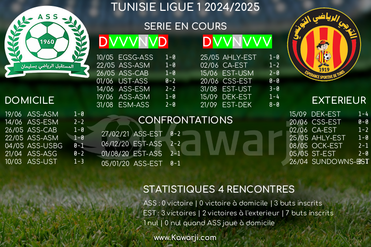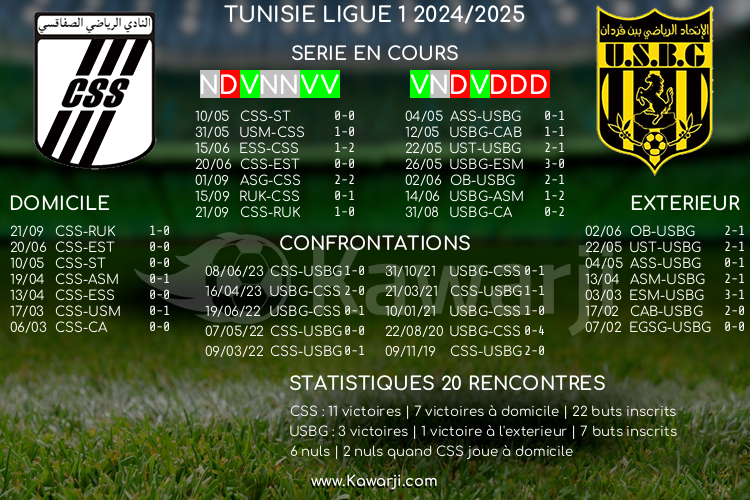 Tunisie-Tribune (Ligue 1) – Avant les rencontres prévues ce mercredi pour le compte de la 2ème journée de Ligue 1 tunisienne 2024-2025, voici l’historique et les statistiques relatifs à ces confrontations :