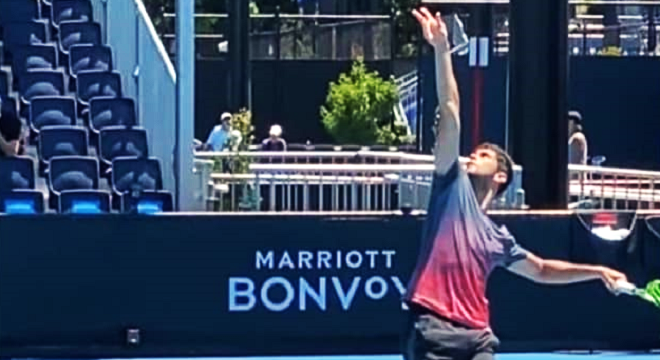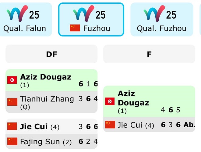 Dans des conditions de jeu particulièrement éprouvantes, avec une chaleur et une humidité suffocantes, Dougaz a dû batailler pendant 2h51 minutes pour s’imposer. Mené 4/6 dans le premier set, il a su renverser la vapeur pour s’imposer 6/3 dans la deuxième manche. Alors que le troisième set se dirigeait vers un tie-break, son adversaire a dû abandonner, touché par de violentes crampes.