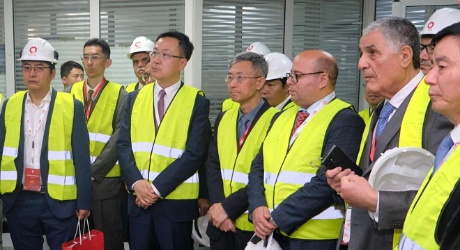 Après la cérémonie, M. Wei Rushan, accompagné de S.E. M. Wan Li, de M. Karim Brenji et de la délégation officielle, a visité la ligne de production et la salle de contrôle central de la société CJO Tunisie, afin de présenter aux invités les opérations de l’entreprise et ses perspectives de développement