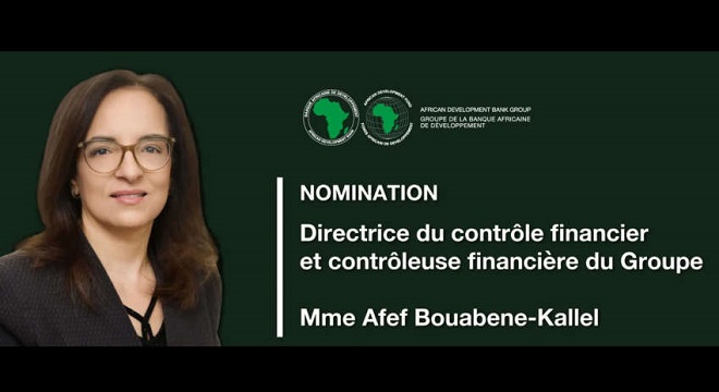 Tunisie-Tribune (BAD) – La Banque africaine de développement (BAD) a annoncé la nomination de la Tunisienne Afef Bouabene-Kallel au poste de directrice du Département du contrôle financier et contrôleuse financière du Groupe. Cette nomination vient couronner un parcours remarquable au sein de l’institution panafricaine, qu’elle a rejointe en 2005.
