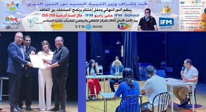 Après un échange d’attestations et de trophées entre M. Ali Messadi, M. Hamed Soyah (PDG de Radio IFM) et les représentants de la direction générale, ces derniers ont remis des certificats d’appréciation aux contributeurs de ce programme, aux différentes délégations régionales de l’Éducation, aux chefs de services des activités culturelles, sportives et sociales, ainsi qu’aux directeurs des lycées du Carré d’As, à savoir Sousse, Ben Arous, Sidi Bouzid et Siliana.