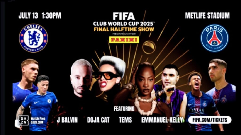 Tunisie-Tribune (Finale de la Coupe du Monde des Clubs de la FIFA™) – Ce dimanche, la région de New York New Jersey deviendra l’épicentre mondial du football et de la musique, avec plus de quatre heures de spectacle non-stop. Les fans assisteront à un football de classe mondiale et à un divertissement révolutionnaire alors que la très attendue finale de la Coupe du Monde des Clubs de la FIFA™ entre Chelsea FC et le Paris Saint-Germain se déroulera au MetLife Stadium.