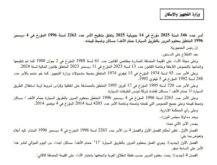 Cette révision intervient notamment après la suppression de la station de péage située entre Sousse et El Kalaâ Sghira sur l’autoroute A1. L’arrêté modifie certains articles de l’arrêté de décembre 1996, réajustant ainsi les définitions et tarifs applicables sur les tronçons concernés.