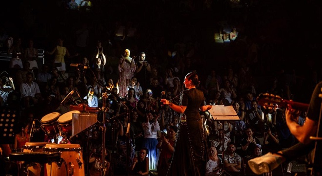 Apparue sur scène avec sa voix puissante et sa robe en noir sobre, et toute en élégance, elle magnétise grâce à sa présence scénique et son sens de la communication avec son public. Entourée par de nombreux musiciens 100% tunisiens, son énergie sublime. Les musiciens ont excellé, à commencer par le violoniste Outail Maaoui, chef de la bande, Mohamed Ben Salha au Nay, Dali El Euch à la batterie, Béchir Neffati à la percussion, Abdelaziz Cherif à la basse, Khalil Jemai à la guitare, Bechir Ghorbal aux Keys, ainsi que les deux chanteuses à la chorale, Asma Cherif et Emna Ezzine.