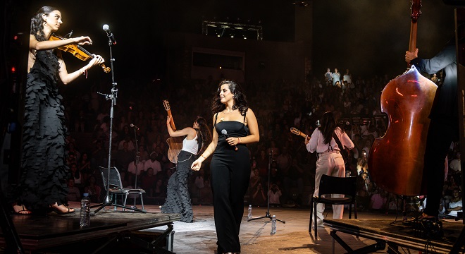 Ensuite, place à la performance, avec un morceau introductif qui fait l’effet d’une mélodie somptueuse en guise d’ouverture, et qui s’appelle « Grito ». Le quatuor féminin ne manque pas de rendre hommage à la Tunisie, « Tunez » en langue espagnole et a rappelé l’immense richesse culturelle et historique qui unit les deux terres méditerranéennes. Des morceaux hautement rythmés ont bouleversé l’audience comme « Pena, Penita, Pena », « Una, Mica, Mès », ou « La Trincheda Helada ». Elles chantent l’eau avec « Agua » et clôturent avec des chansons comme « Mediterráneo » et « Antonia ».