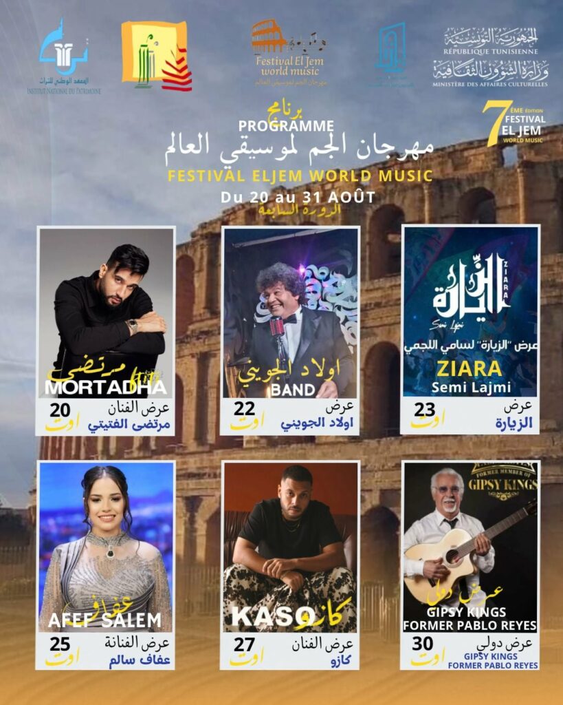 Tunisie-Tribune (Les Gipsy Kings) – L’amphithéâtre d’El Jem, véritable bijou de l’Antiquité romaine tunisienne, s’apprête à vibrer au rythme de la 7ᵉ édition du Festival El Jem World Music, prévue du 20 au 31 août 2025.