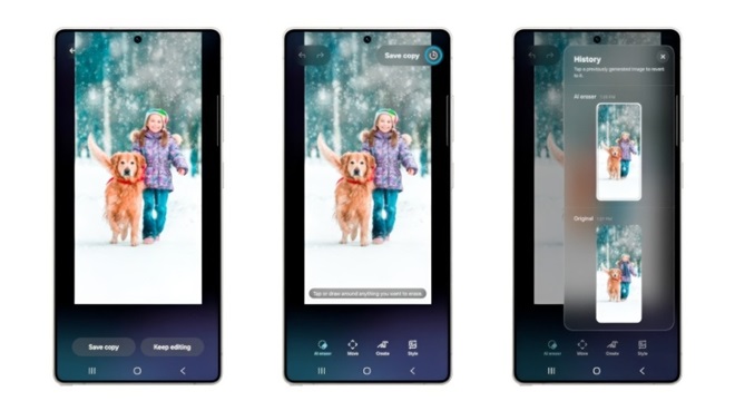 One UI 8.5 rend la création et le partage de contenu plus intuitifs du début à la fin. Les utilisateurs peuvent continuer à générer de nouvelles images sans interruption grâce à la mise à jour de Photo Assist[1]. Ils peuvent modifier des photos en utilisant les fonctions Photo Assist en continu, sans avoir besoin d’enregistrer chaque itération. Lorsqu’ils ont terminé, ils peuvent facilement revoir toutes les créations dans l’historique des modifications et choisir celles qu’ils préfèrent.