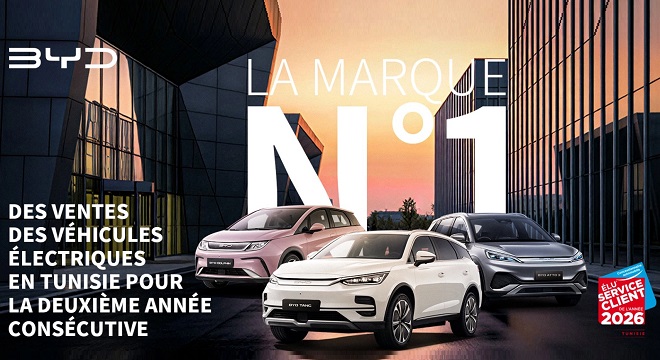 Cette performance s’accompagne d’une dynamique de gamme remarquable : les trois modèles électriques commercialisés en Tunisie BYD Tang, BYD Dolphin et BYD Atto 3 se classent tous dans le Top 5 des véhicules électriques les plus vendus en 2025. Au total, un véhicule électrique sur trois vendu en Tunisie en 2025 était un modèle BYD, confirmant le rôle central de la marque dans la démocratisation de l’électromobilité sur le marché tunisien.