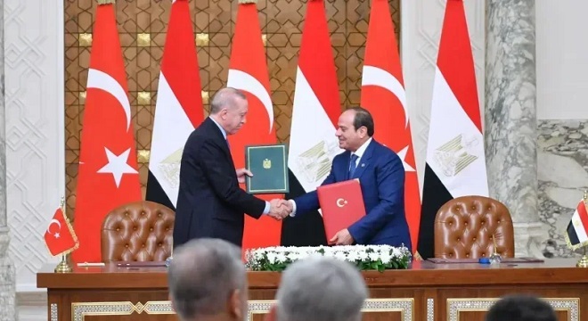 « Les échanges bilatéraux ont atteint près de 9 milliards de dollars, faisant de l’Egypte le principal partenaire commercial de la Turquie sur le continent africain », a ajouté Sissi après la signature par des ministres des deux pays de 18 accords couvrant la défense, le tourisme, la santé et l’agriculture.