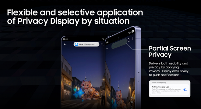 Contrairement aux filtres de confidentialité adhésifs traditionnels qui assombrissent l’écran et nuisent à la netteté, la solution intégrée de Samsung vise à préserver la qualité d’affichage optimale. Une fois activée, la fonction « Privacy Display » réduit instantanément la visibilité depuis les côtés sans compromettre la luminosité ni la précision des couleurs. Cette protection fonctionne de manière transparente aussi bien en mode portrait qu’en mode paysage, s’adaptant naturellement à la façon dont les utilisateurs se servent de leur téléphone.