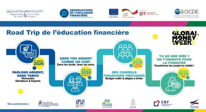 Tunisie-Tribune (Road Trip) – L’Observatoire de l’Inclusion Financière annonce le lancement, à partir du 6 avril courant, du « Road Trip de l’Éducation Financière », organisé dans le cadre de la Global Money Week 2026.