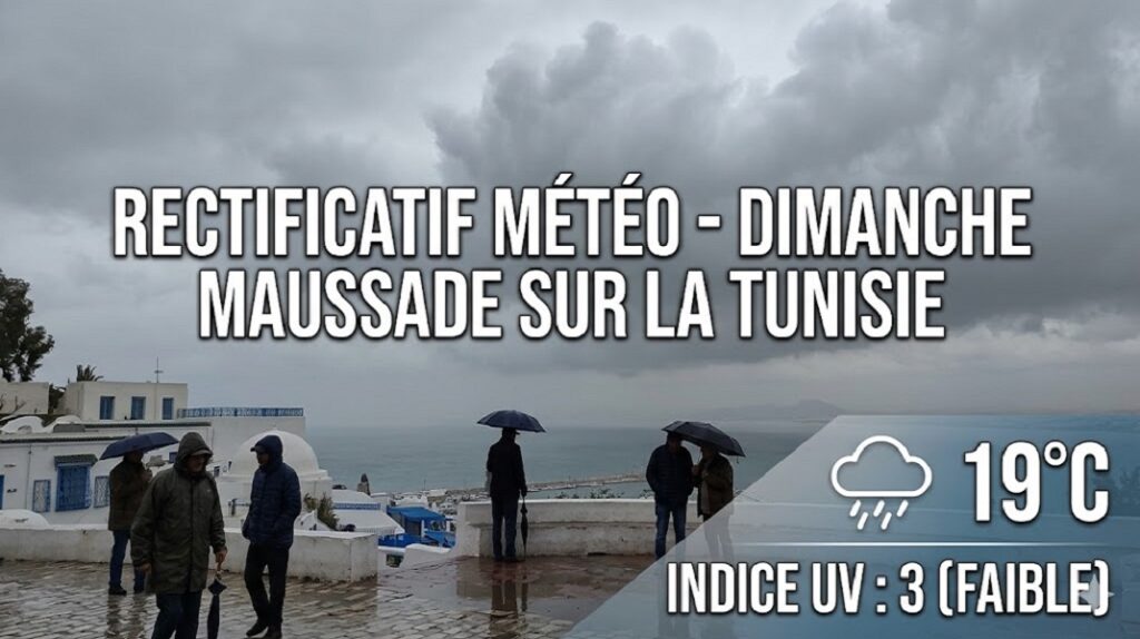Tunisie-Tribune (Prévisions Météo) – Contrairement aux prévisions printanières attendues, la Tunisie s’est réveillée ce dimanche sous un ciel gris et une atmosphère maussade. L’Institut National de la Météorologie (INM) confirme un changement de flux imprévu apportant humidité et fraîcheur sur la majeure partie du pays. La prudence est de mise sur les routes.