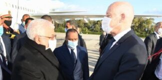 Kais Saïed accueille Abbas à l’aéroport de Tunis-Carthage