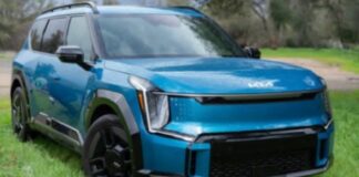 Kia EV9. cet imposant et élégant SUV électrique familial, long de...