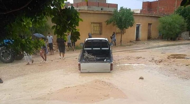 Tunisie-Tribune (voitures englouties) - Un grand trou à l’entrée de la ville de Sbeitla au gouvernorat de Kasserine a forcé les unités de la protection