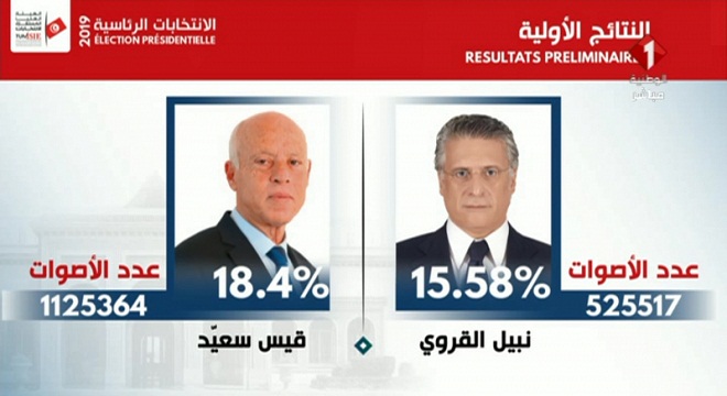 Résultats préliminaires officiels de l’élection présidentielle : Kais Saied 18,4% des voix et Nebil Karoui 15,6%
