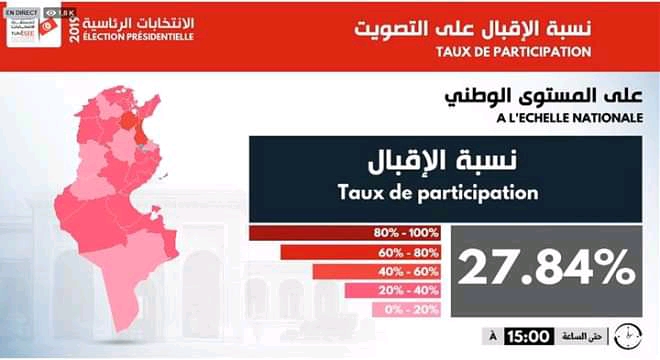 ISIE : 27,8% de taux pour la participation nationale aux Présidentielles (à 15h)