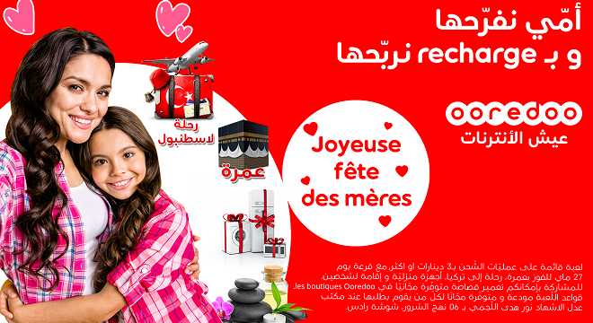 Tunisie-Tribune (Ooredoo gâte les mamans) - Ooredoo Tunisie met les mamans à l'honneur et lance le jeu « Fête des mères », permettant ainsi à ses abonnés