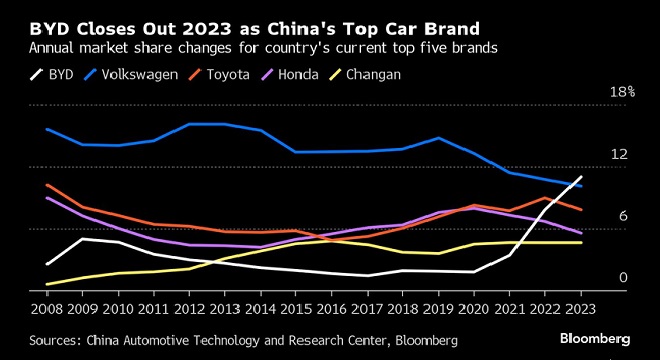 BYD vole la place de numéro 1 des ventes à Volkswagen, leader historique en Chine
