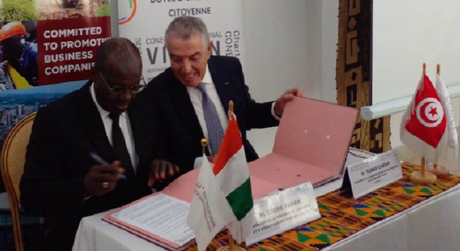 Tarak Cherif signe traité de coopération à Abidjan