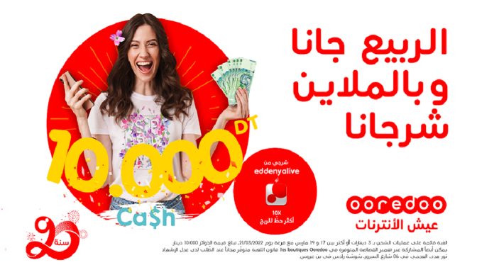 10 000 DT CASH à gagner à l’occasion des vacances de printemps avec Ooredoo !