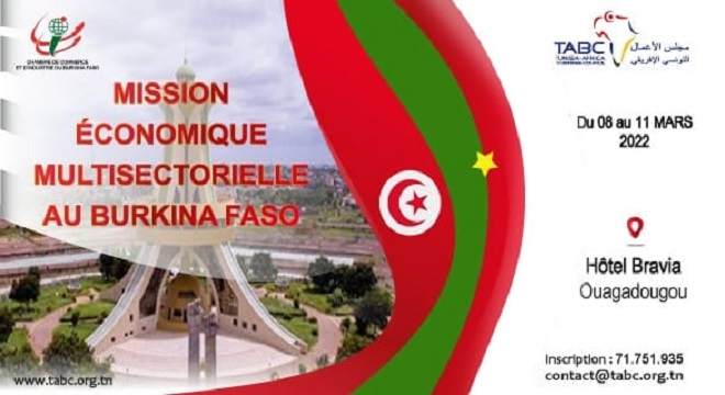 Tunisie Tribune (mission économique au Burkina Faso) - Le Cconseil d’affaires tuniso-africain (TABC) organise, du 08 au 11 mars 2022,