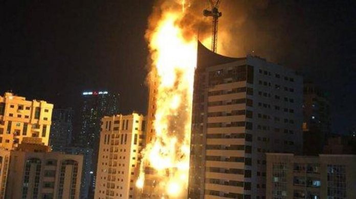 Tunisie-Tribune (gratte-ciel de 48 étages en feu ) - Un gratte-ciel de l’émirat de Sharjah (Émirats Arabes Unis), la tour Abco, haute de 190 m a pris feu