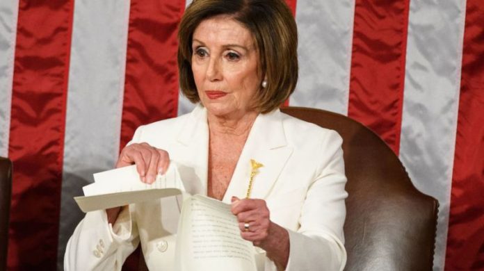 Snobée par Donald Trump, la chef démocrate Nancy Pelosi déchire son discours (vidéo)
